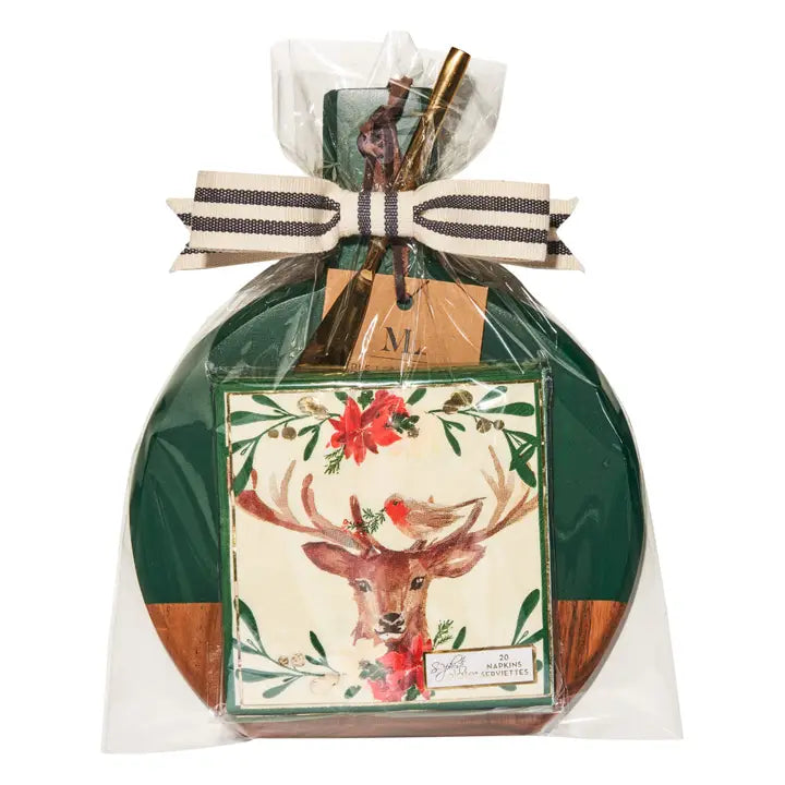 Bevel Board Kit – Green Acacia with Gold Spreader & Christmas Forest Napkin
