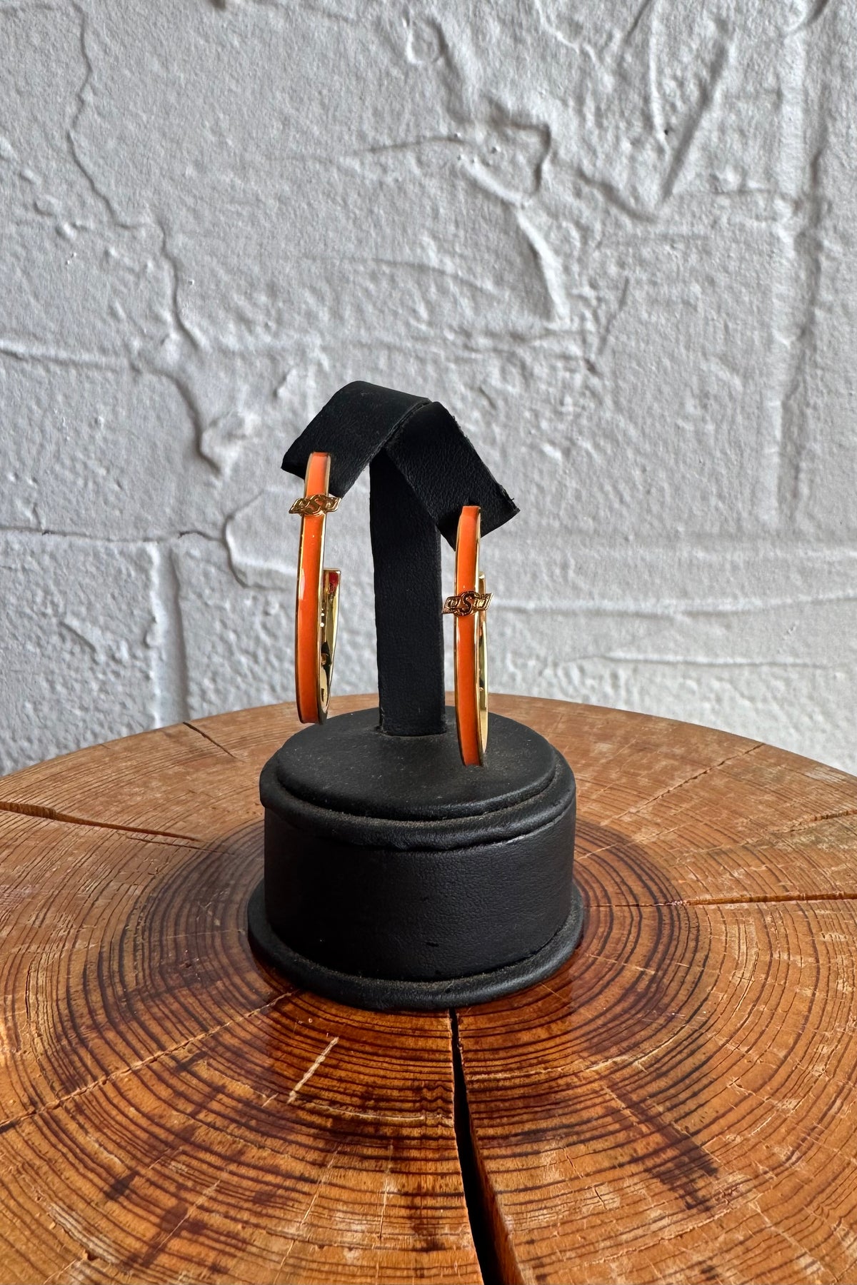 Add a polished pop of team pride with the OSU Enamel Logo Hoop Earrings by Brianna Cannon. These gold-plated hoops feature vibrant orange enamel detailing and the signature BC trademark logo on the back. Perfectly sized at 1.5", they’re the go-to game day hoop—lightweight, bold, and full of Cowboy energy.