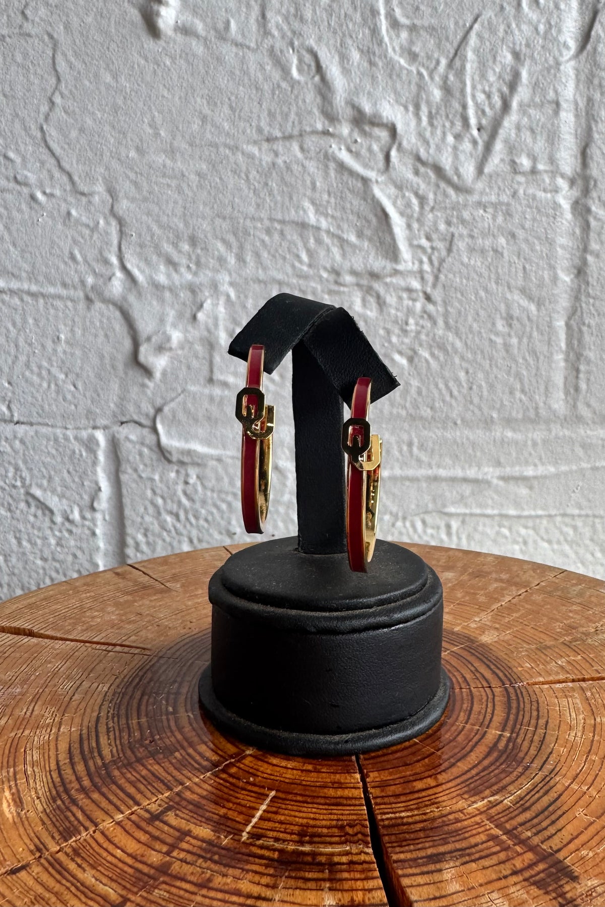 Gold-plated hoop with crimson enamel
