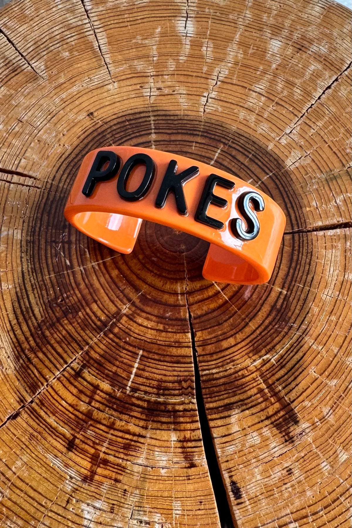 Bring the cowboy energy with the Oklahoma State Orange POKES Cuff. Designed with bold black raised lettering on OSU’s signature orange, this officially licensed cuff is a must-have for any true Pokes fan. Whether you're in Stillwater or watching from afar, it's the perfect touch of team spirit.