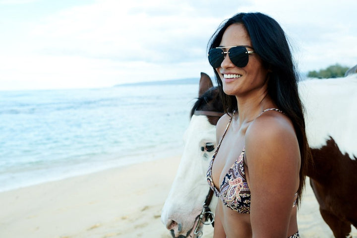 Block out bad vibes in the I-SEA River sunglasses. With an oversized aviator silhouette, slim brow bar, and bold rimless floating lenses, River is a fashion-forward upgrade on a timeless shape. Adjustable nose pads give a secure, no-slip fit, making these shades perfect for sunny getaways or everyday wear.