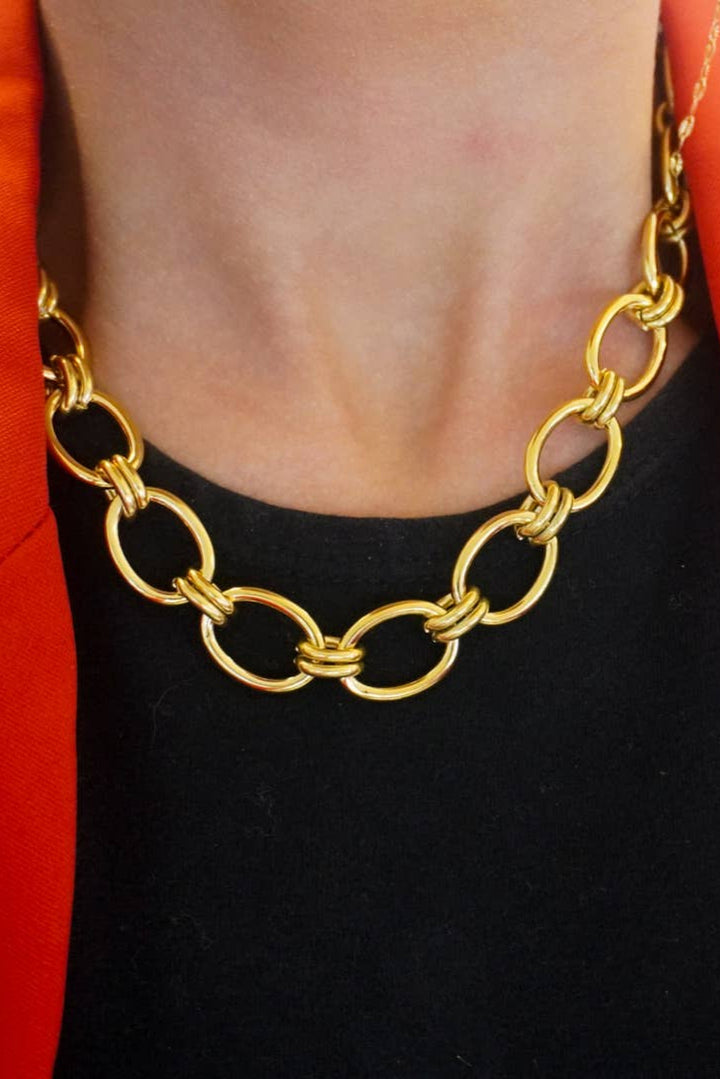 Unleash your inner glamour with our LUXE NECKLACE. Made with luxurious gold, this necklace adds a touch of opulence to any outfit. Elevate your style and shine bright with this must-have accessory.