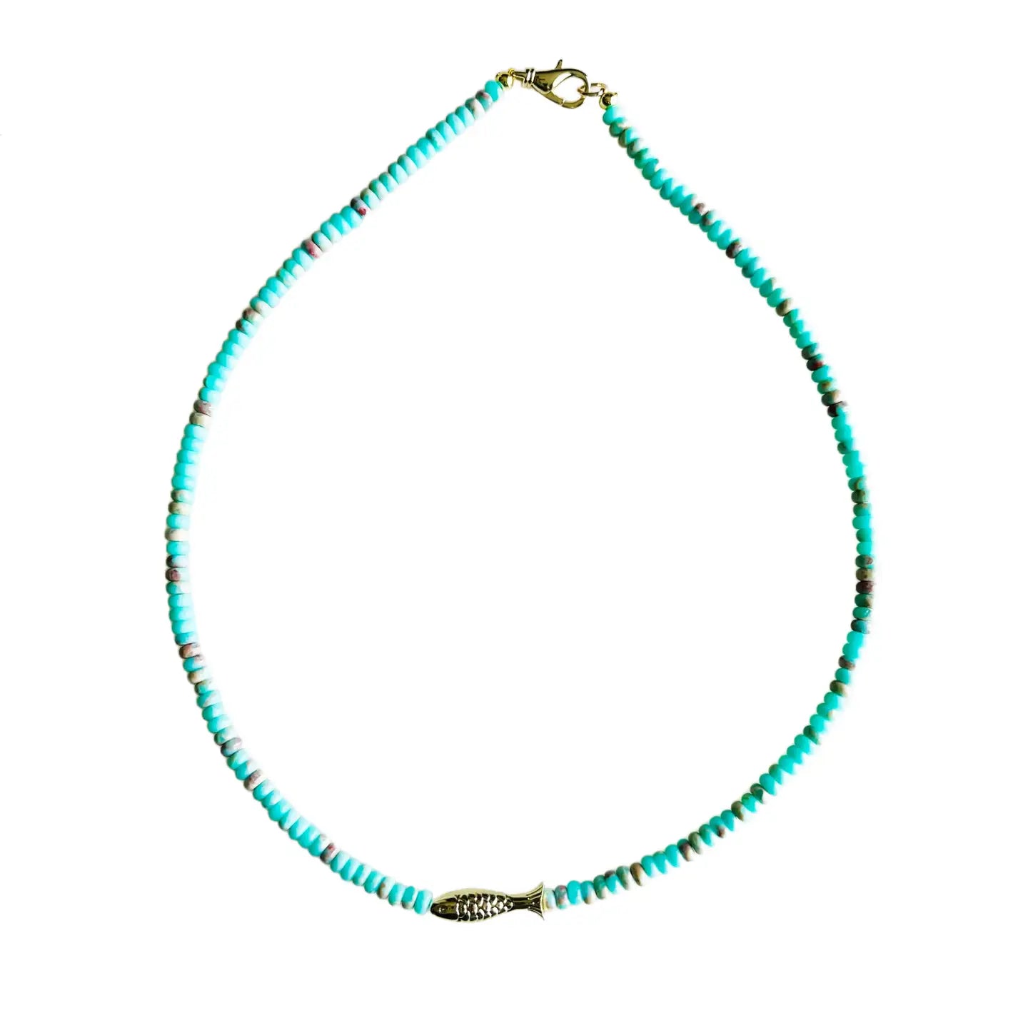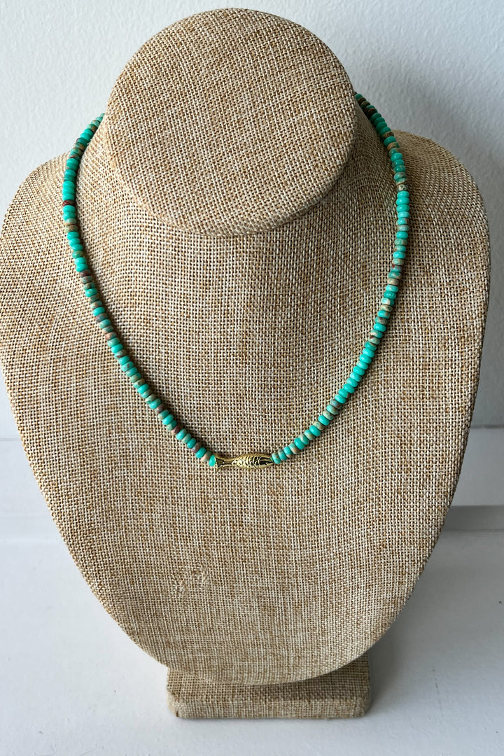 Strung with refreshing green aqua jasper beads and a touch of gold, the Folly Fish Necklace is a coastal gem with personality. Inspired by the fish found along the East Coast and named after Folly Beach, this handmade piece from Charleston, SC brings a hint of seaside charm to your everyday style.