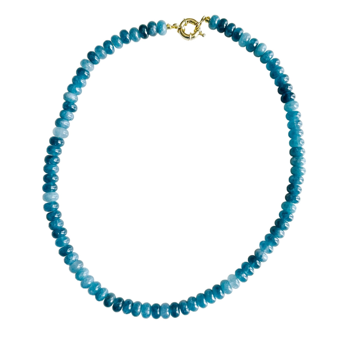 Subtle yet striking, the Candy Necklace in Blue Gray brings a cool, neutral balance to your jewelry lineup. Handmade in Charleston, SC, this 17-inch strand features blue-gray gemstone beads paired with an 18kt gold-plated clasp. The perfect mix of tone and texture, it layers effortlessly or makes a statement on its own.