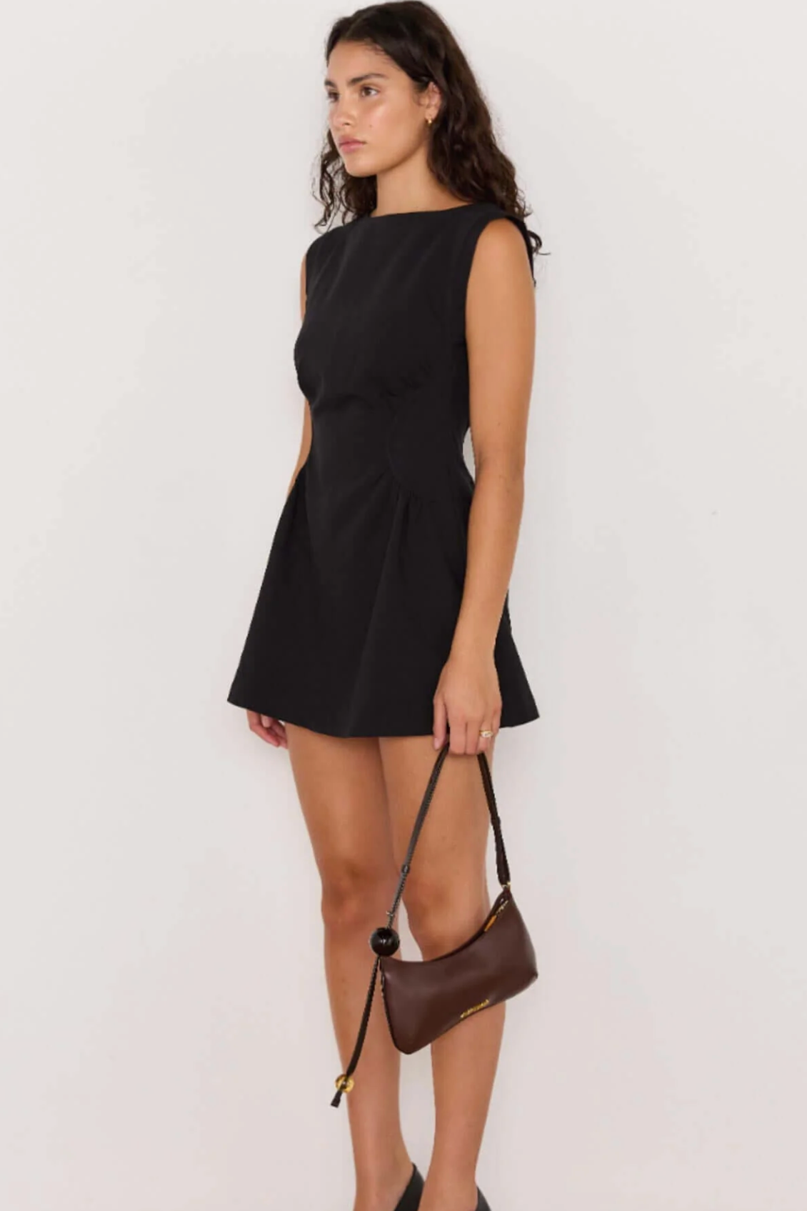 Chic, clean, and confidently minimal — the Romy Mini Dress by MINKPINK proves that less really can be more. With a structured sleeveless fit, high boat neckline, and artful gathering at the waist, this black mini dress contours your silhouette in all the right places. It's a versatile go-to you’ll reach for again and again — day or night.